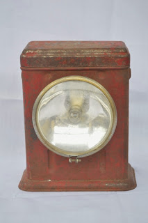 Lampu senter antik, keluaran EVEREADY, buatan Amerika dengan warna merah aslinya. Era Tahun 40 - 50an. Bahan dari kaleng tebal dan kaca cembung yang masih aslinya. Reflektor masih bersih dan mengkilat. Kawat pegangan pada bagian atas hilang, hanya tinggal kawat pegangan pada bagian belakang yang tersisa.